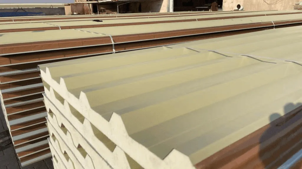 هو عبارة عن ألواح مسبقة الصنع تتكون من طبقتين من الصاج المجلفن (المطلي بطلاء حراري)، يتوسطهما و بناء ملاحق اسمنت بورد مادة عازلة بكثافة عالية وحداد لتركيب أنواع مظلات