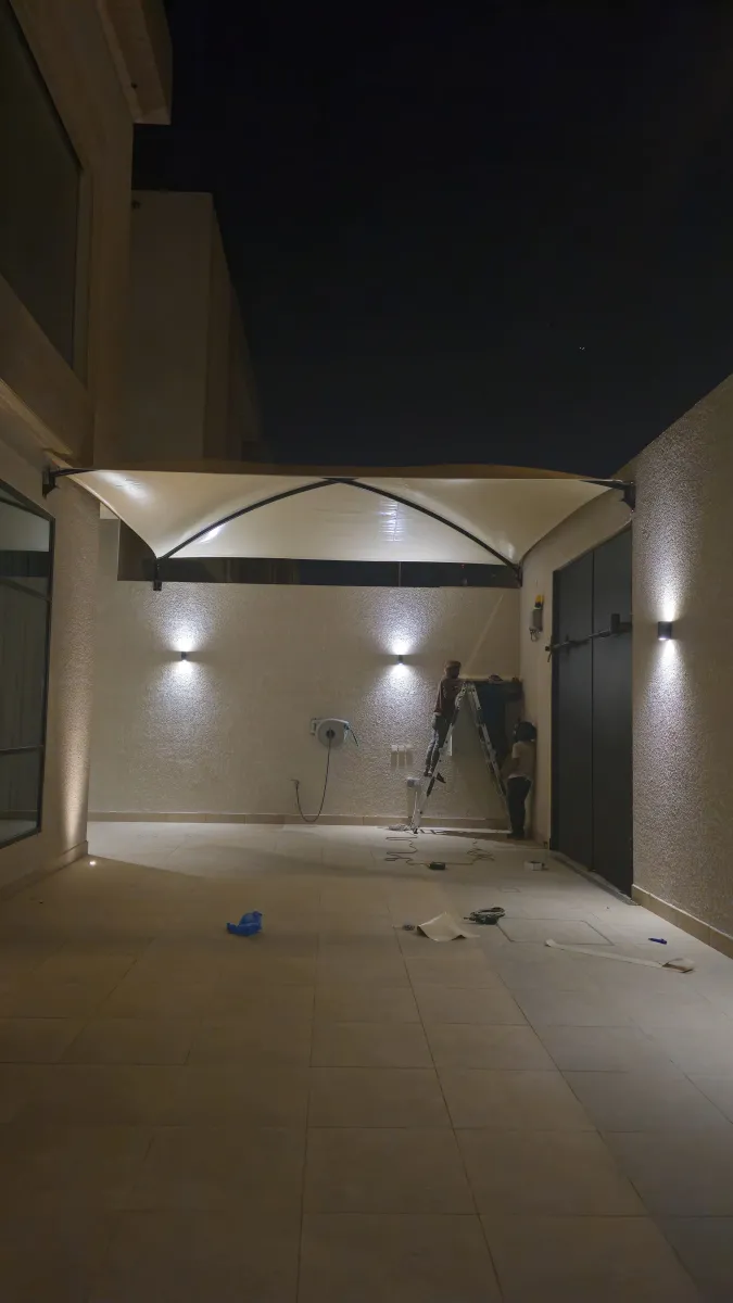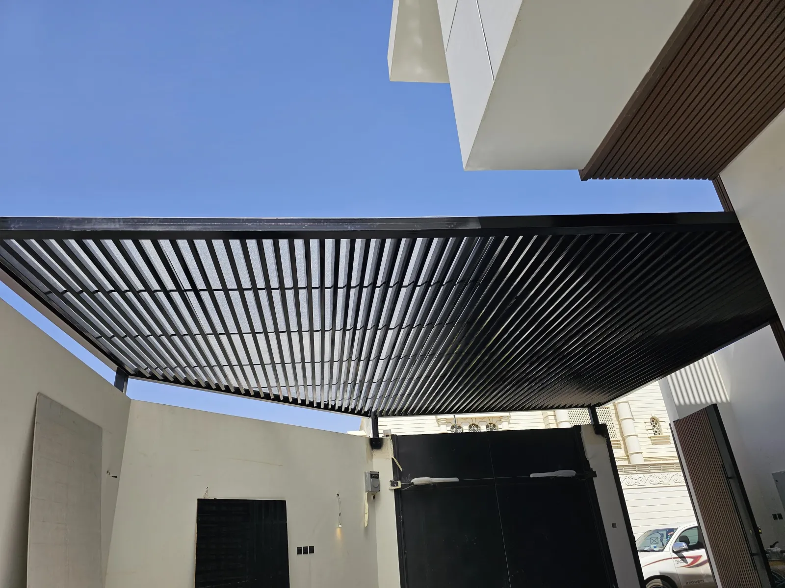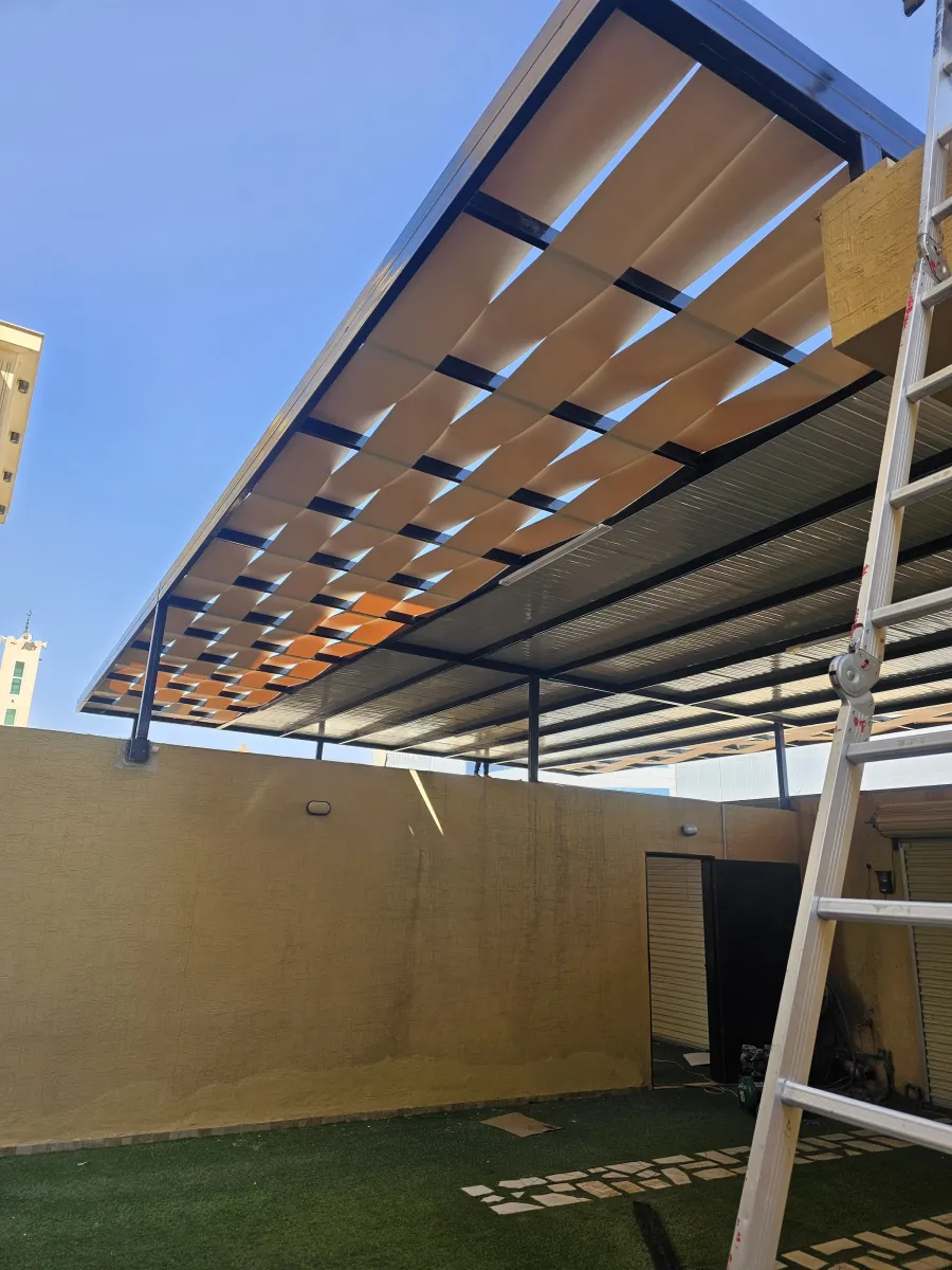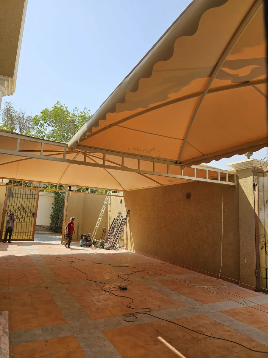 - مميزاتها: عازلة تماماً للماء، مقاومة للحرائق، وتتوفر مظلات أحواش وجلسات خارجيةبألوان متعددة تناسب واجهة المنزل.