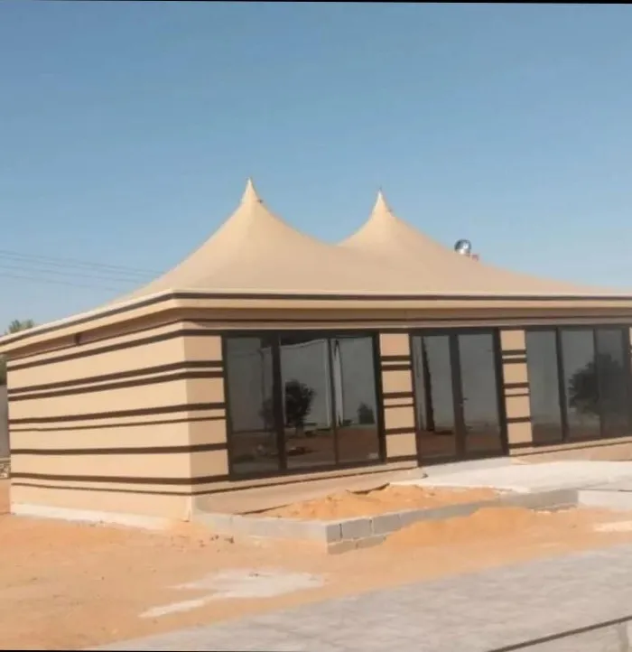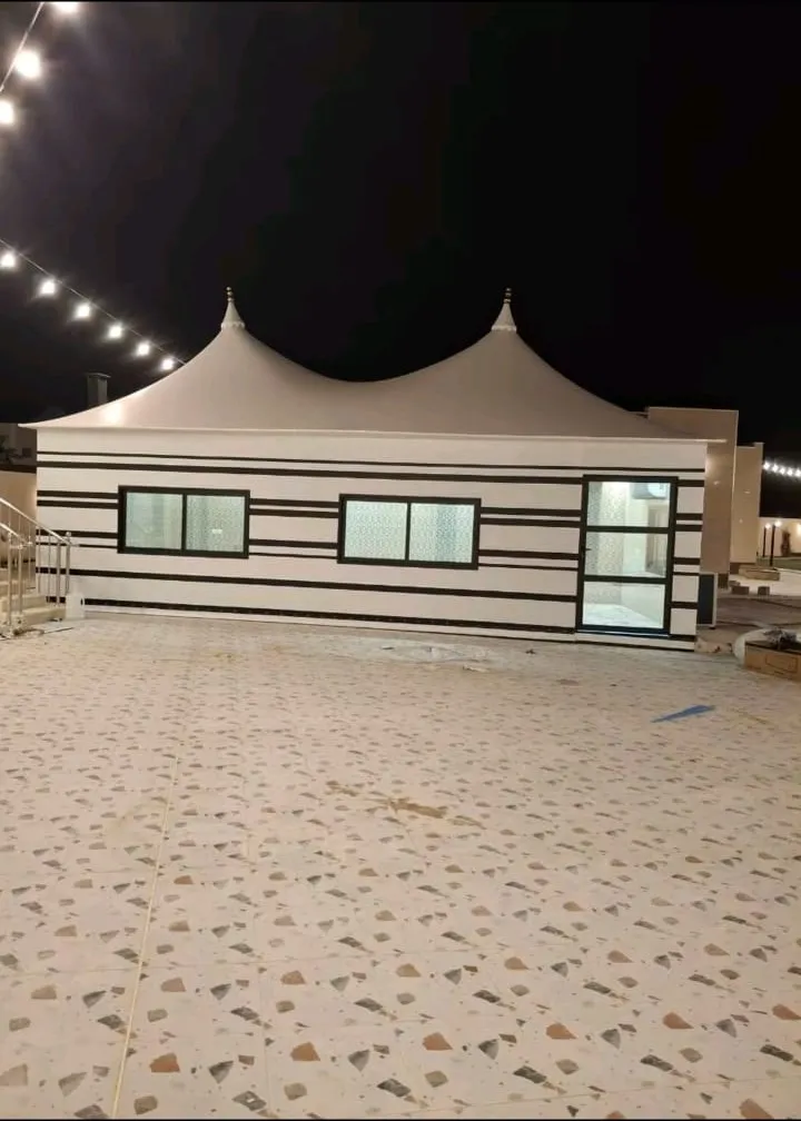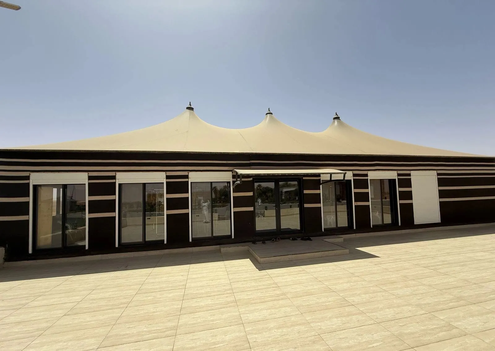 ملاحظة خبيرة: اختيارك للألوان المحايدة (البيج، الرمادي الفاتح، الجملي)وملاحق الساندوتش بانل بالرياض وتصميم بيوت شعر بأشكال جديدةفي الأثاث يجعل مساحة بيت الشعر تبدو أوسع وأكثر راحة للعين.