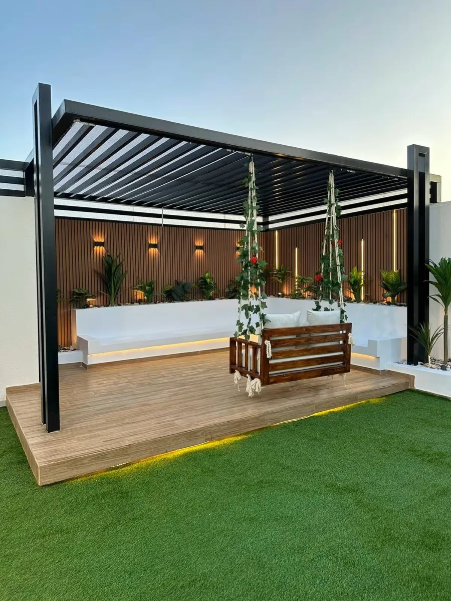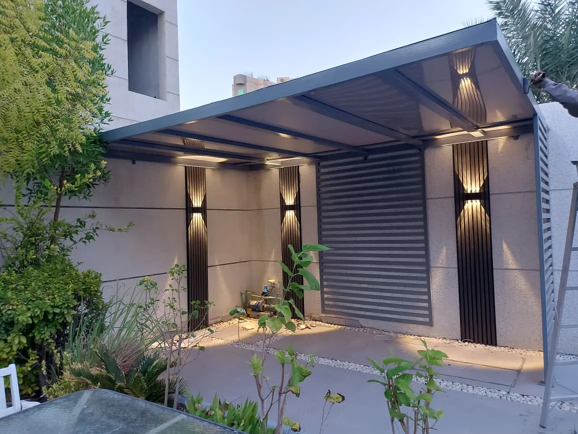 - نوع التغطية: قرر ما إذا كنت تريدها مكشوفة (للمظهر فقط) أو مغطاة بالقماش الألماني (PVC) أو اللكسان للحماية من المطر.