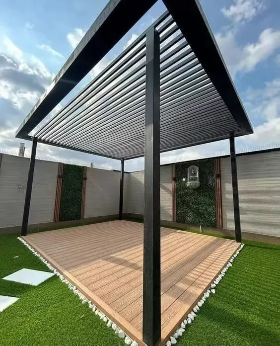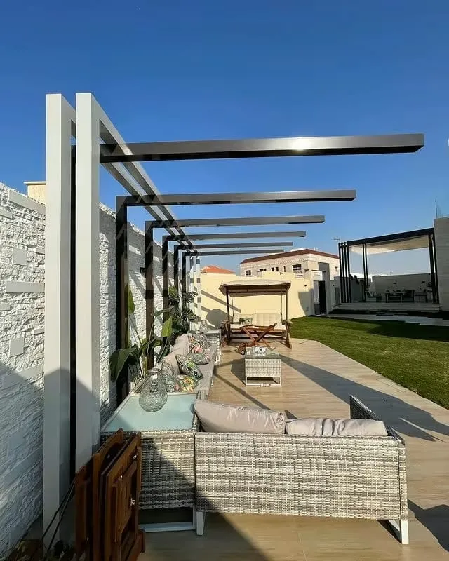 - برجولات مودرن بسيطة: تعتمد على المربعات الحديدية والزوايا القائمة، وتناسب المنازل ذات التصميم المعماري الحديث.