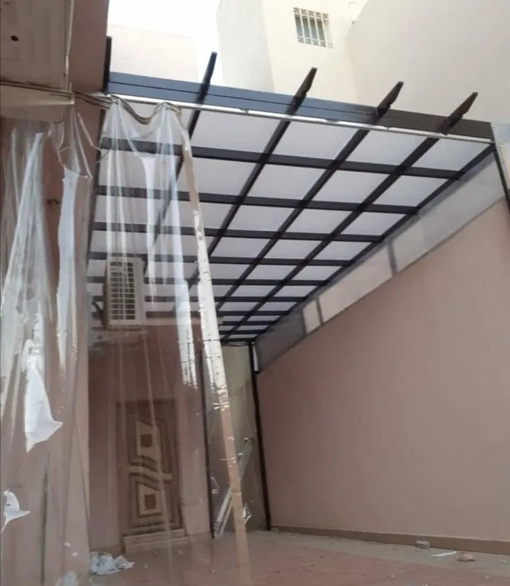 - التغطية: خيارات متنوعة تشمل اللكسان الشفاف أو الملون، أو قماش PVC الألماني عالي الكثافة.