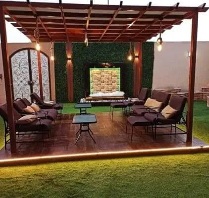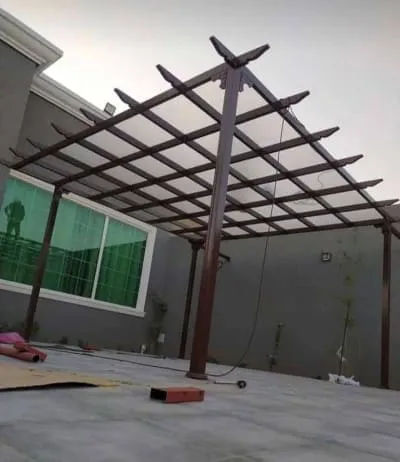 - برجولات حدائق حديد: نوفر تصاميم برجولات حديدية تحاكي شكل الخشب الطبيعي (الدهان الخشبي) لتعطيك لمسة الطبيعة مع قوة المعدن.