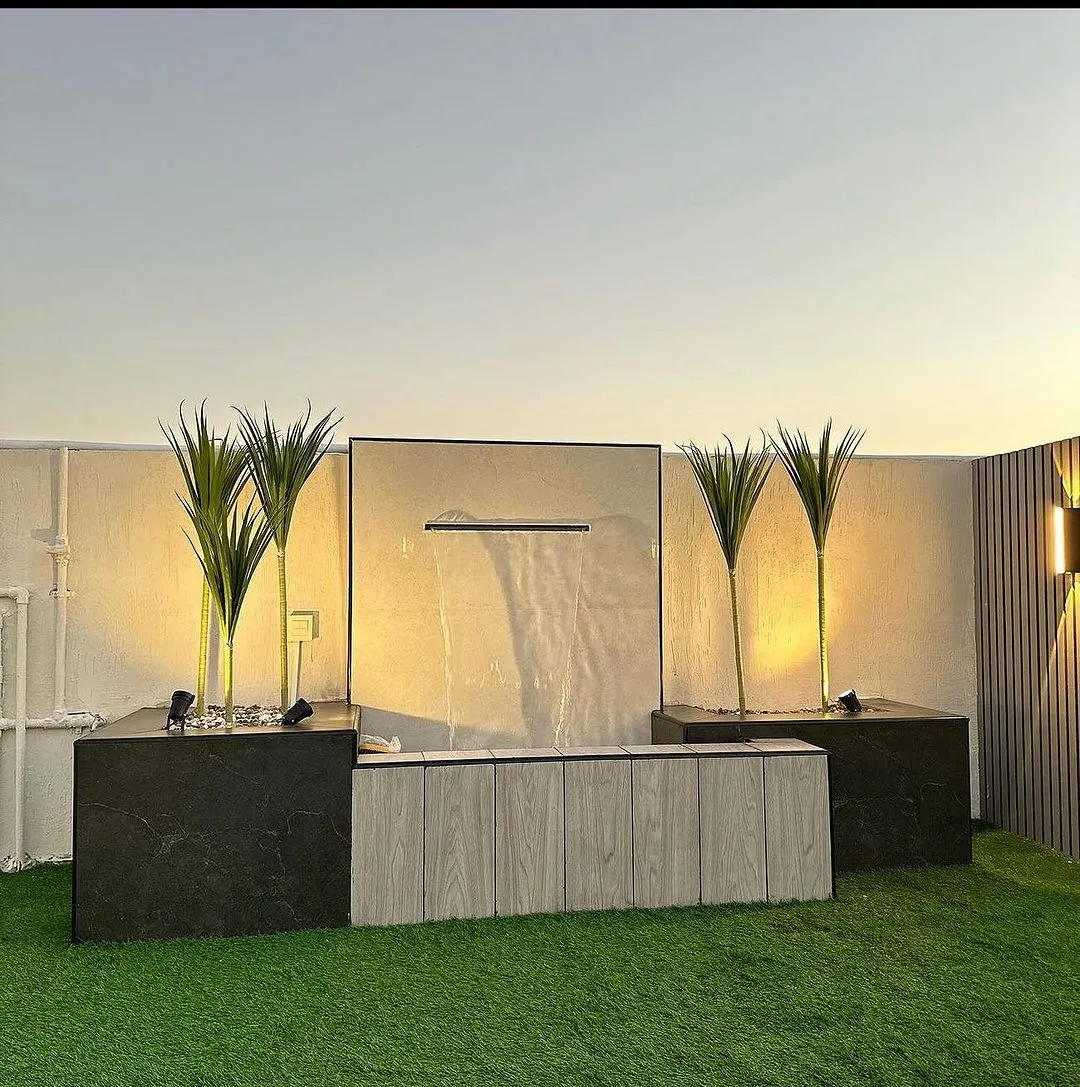 - توزيع احترافي لتمديدات الكهرباء والمياه (للنافورة أو الشلال).