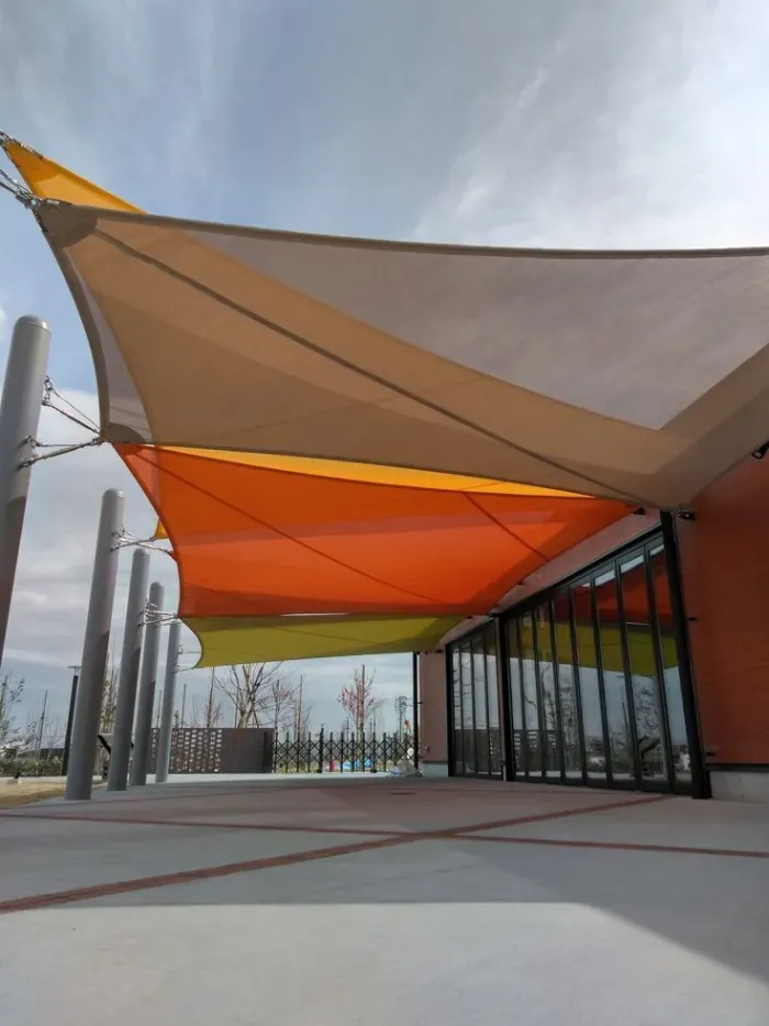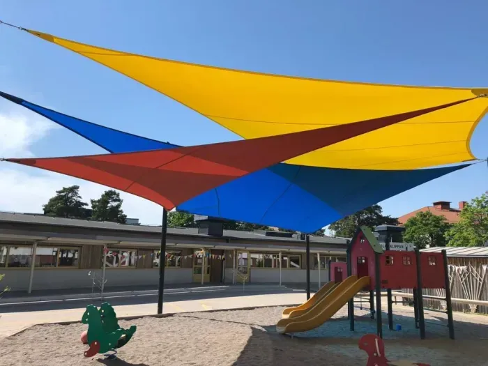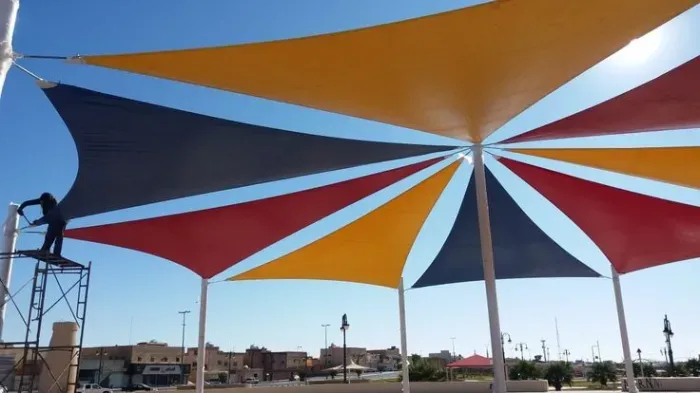 - مظلات البولي إيثيلين: توفر نسبة ظل عالية وتسمح بمرور الهواء، مما يجعلها مثالية للملاعب والساحات الكبيرة.