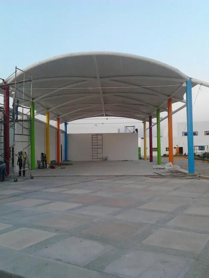 - مظلات الـ PVDF: تمتاز بمتانة فائقة وسهولة في التنظيف، وتعتبر الخيار الأفضل للمدارس التي تبحث عن عمر افتراضي طويل جداً.
