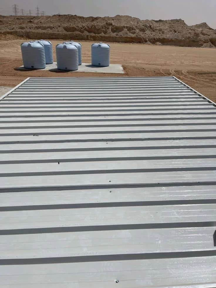 - التغطية: تركيب ألواح الساندوتش بانل للجدران والأسقف باستخدام براغي مجلفنة مخصصة تمنع تسرب مياه الأمطار.