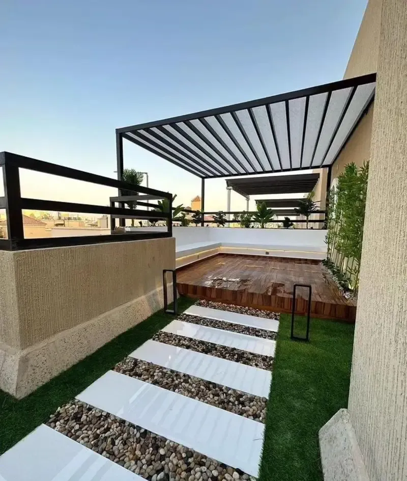 - تعزيز الجمال المعماري: تضيف المظلة لمسة جمالية راقية للواجهة، وتعمل كعنصر ترحيبي يعزز من المظهر العام للمنزل. في أحياء مثل القيروان والنسيم، يتم التركيز على التصاميم الحديثة والمتوافقة مع الطراز المعماري للفلل.