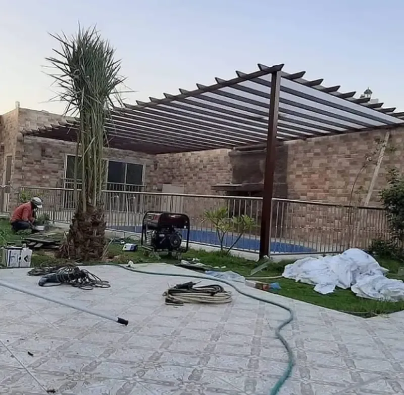 - المظلات المودرن (الحديثة): تتميز بالبساطة، والخطوط المستقيمة، والأعمدة المخفية أحياناً. يفضلها الكثيرون في القيروان والنسيم لتناسبها مع طراز الفلل العصرية.