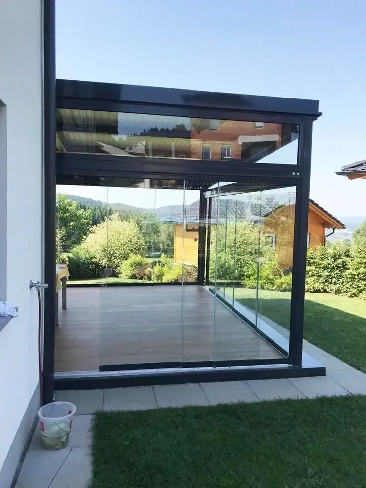 - القاعدة المتينة: يجب عمل أساس قوي ومستوٍ 📐 يتحمل وزن الهيكل الزجاجي والأثاث، مع مراعاة العزل المائي للسطح.