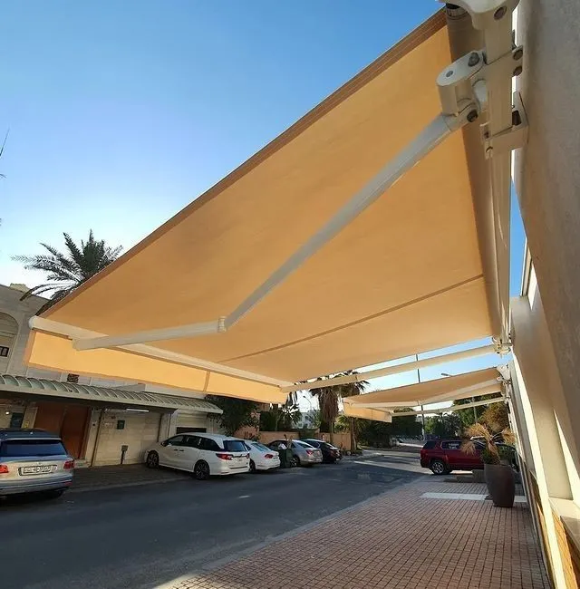 الاستخدامات الشائعة في الرياض: تظليل جلسات الفناء (الباحات)، شرفات (بلكونات) الشقق، مواقف السيارات الخاصة التي تتطلب مرونة في الاستخدام.