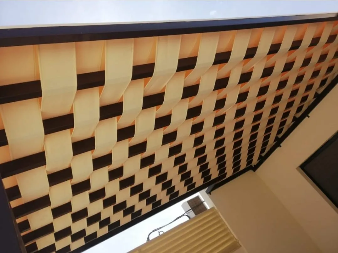 - المظلات الخشبية واللكسان: تستخدم لجمالية المظهر، واللكسان (البولي كربونيت) يوفر حماية من المطر مع السماح بمرور الضوء الطبيعي.
