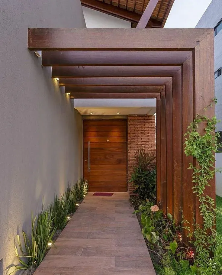- المظلات الخشبية (البرجولات): تعطي لمسة دافئة وطبيعية، وغالباً ما تُصنع من الخشب المعالج المقاوم للرطوبة وسوس الخشب.