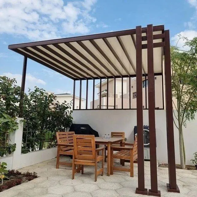 تستخدم في الحدائق والأسطح لخلق فضاء مريح للعائلة. يتم دمج الحديد مع اللكسان (الزجاج الشفاف) أو القماش ليعطي مظهراً عصرياً.