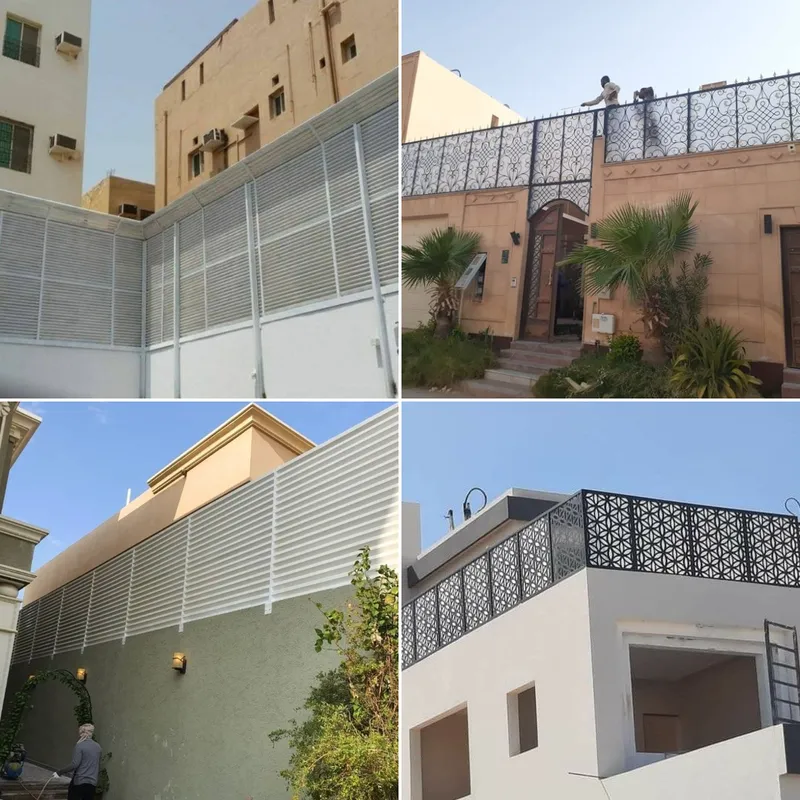 - سواتر شرائح حديد: توفر حجباً كاملاً للرؤية وتسمح بمرور الهواء بشكل بسيط.